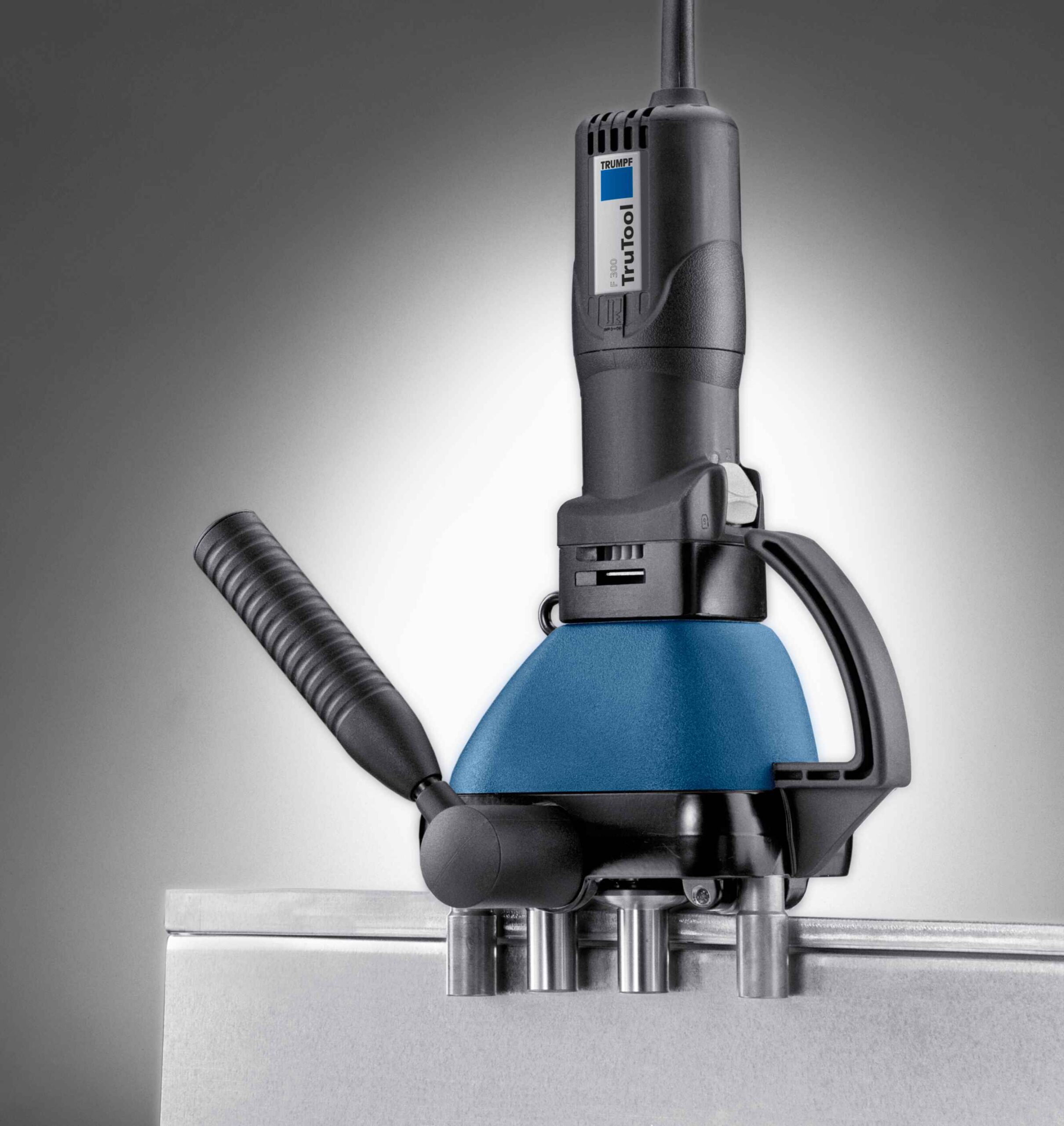 Der TruTool F 300 eignet sich hervorragend für das Schließen von Pittsburghfalzen an geraden oder gebogenen Kanälen. Mit dem geräuscharmen Roll-Gleitverfahren arbeiten Sie rasch und erhalten eine dichte Verbindung. Der Blechdickenbereich reicht dabei von 0,75 mm bis 1,25 mm Baustahl. Die Anpassung an die Blechdicke erfolgt automatisch.