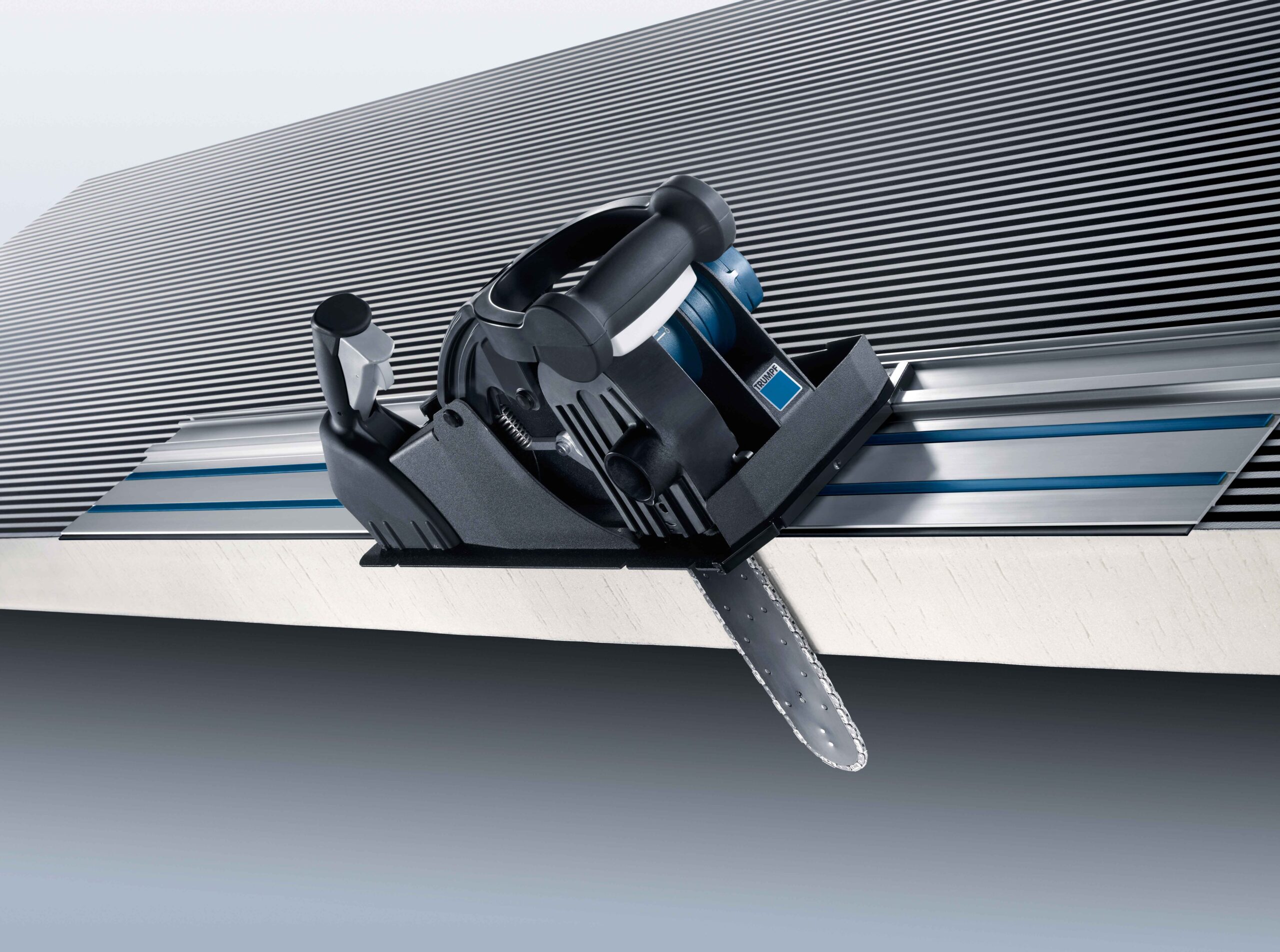 Mit dem Panel Cutter TruTool TPC 165 trennen Sie Sandwich-Paneelen bis zu einer Dicke von 165 mm. Mit dem Eintauchmechanismus des Schwerts stellen Sie maßgenaue und rechtwinklige Innenausschnitte und Ausklinkungen her. All dies in einem Arbeitsgang. Die Maschine ist ohne Voreinstellungen einsatzbereit. Einfach die korrekte Schwertposition wählen und mit dem Schneiden beginnen. Dabei schneidet der TruTool TPC 165 Paneelen unabhängig davon, ob die Oberfläche plan, trapez- oder wellenförmig ist.