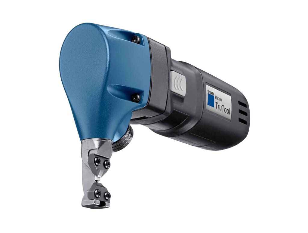 TruTool PN 200 ist mit seinem kurzen Werkzeug speziell für Trapezbleche bis 85 mm Profiltiefe und C-L-U-Profile konzipiert. Seine Leistungsstärke reicht bis 2 mm im Baustahl und 1 mm im Edelstahl und er schneidet selbst gedoppelte Bleche. Dabei können Sie die Maschine auf der Stelle um 360° drehen. Schneidrichtungs-, Stempel- und Werkzeugträgerwechsel erfolgt rasch und werkzeuglos. Zur Erweiterung der Anwendungsbereiche stehen Ihnen unterschiedliche Werkzeugtiefen zur Auswahl.